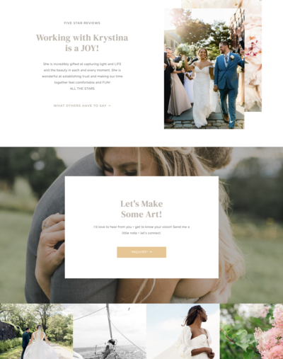 Krystina Olsen is a Boston wedding photographer whose previous website no longer matched her brand. As her style evolved, her site fell behind—feeling misaligned with the elevated, heartfelt aesthetic her photography is known for today.